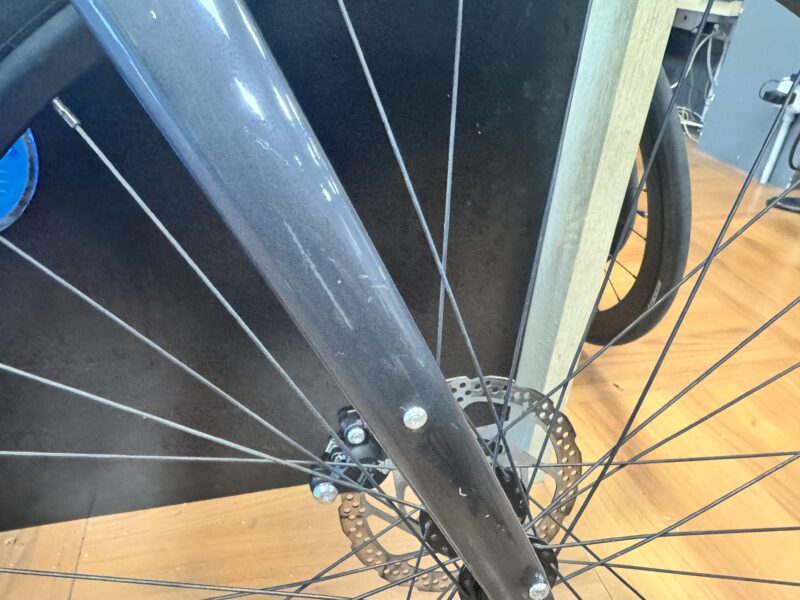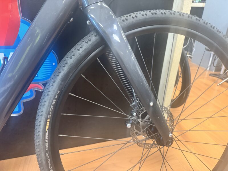 Forcella: Full Carbon, 1-1/8″ to 1-1/4″ steerer, 55mm OutFront offset, flat mount disc, internal routing, 12×100 thru axle